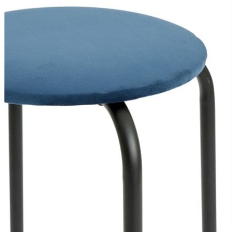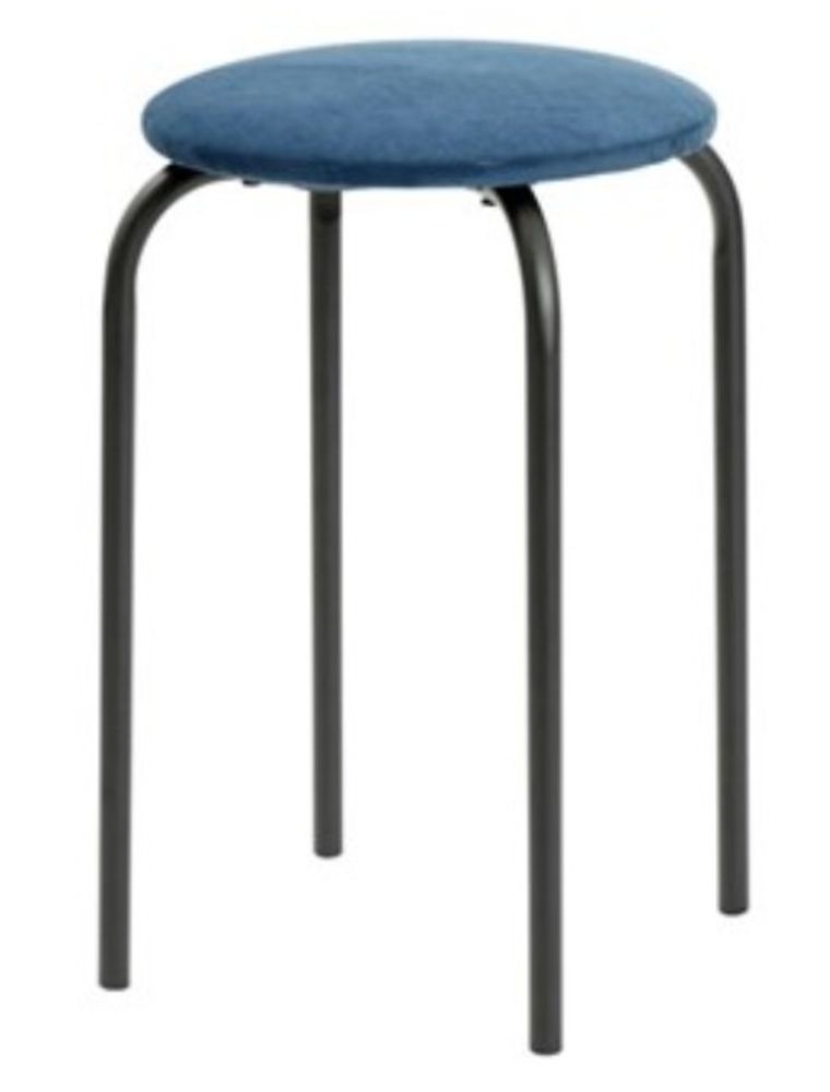 Metallirunkoinen pinottava jakkara mikroplyyshi kankaalla.