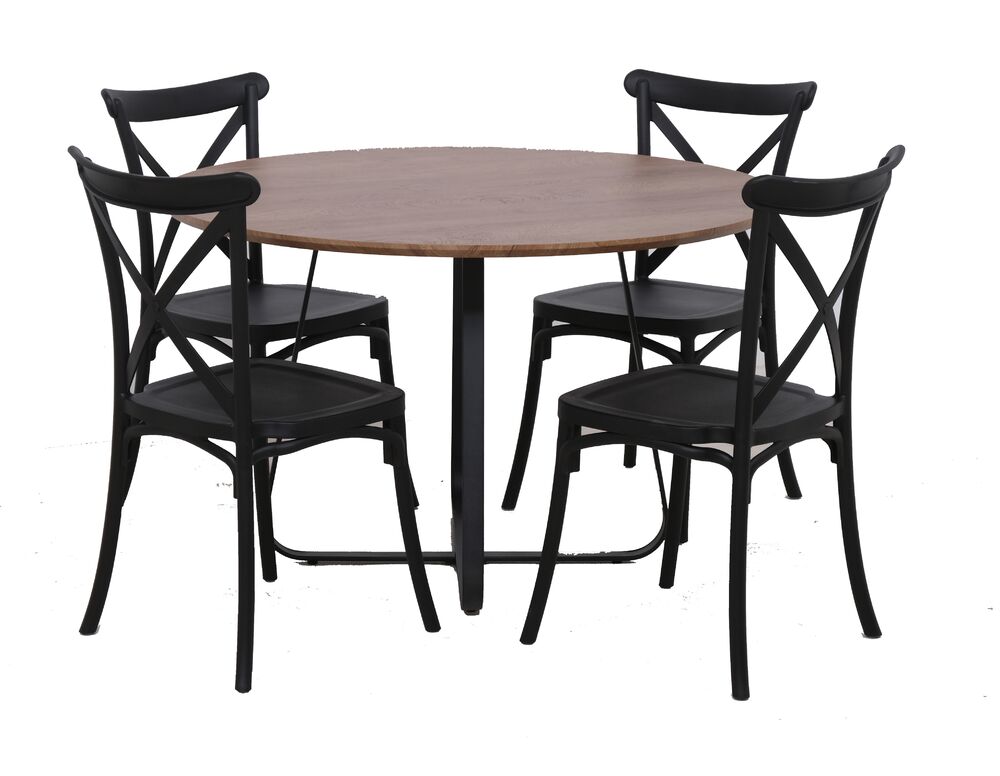 Metalwood pyöreä ruokailupöytä on täydellinen valinta, kun haluat viihtyisyyttä ja järkevää tilan käyttöä keittiöön tai ruokailutilaan. Tämä isokokoinen halkaisijaltaan 120 cm oleva pyöreä keittiönpöytä, jossa on ruskea puujäljitelmällä kuvioitu kansi ja musta metallijalka, on muotoilultaan moderni.