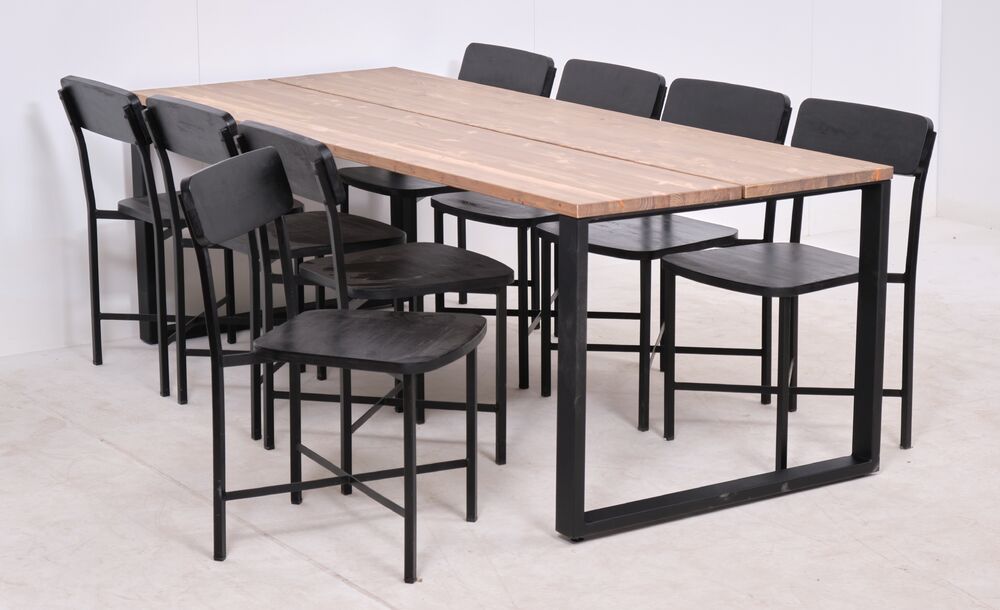Edna lankkupöytä 220x90cm antiikkipetsattu/musta+8kpl Kerala tuoleja