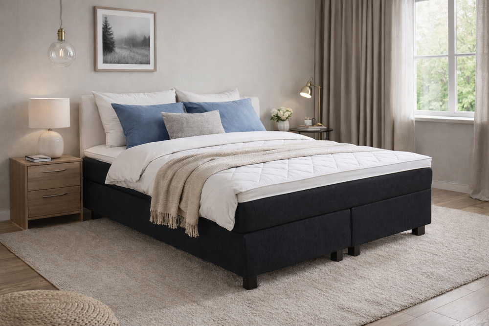 Korkealaatuinen ja erittäin tyylikäs pussijousitettu jenkkisänky. Mukana muhkea 7,5cm vahva petauspatja.