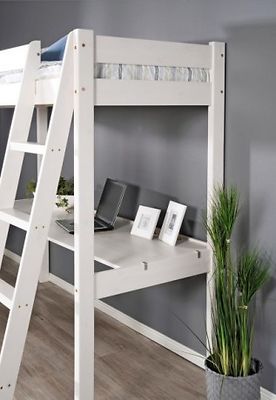 Kaunis kuultovalkea massiivipuinen parvisänky johon saatavilla myös työtaso ja säilytyshylly. Tuotetta saatavilla 80x200cm ja 120x200cm patjakoossa