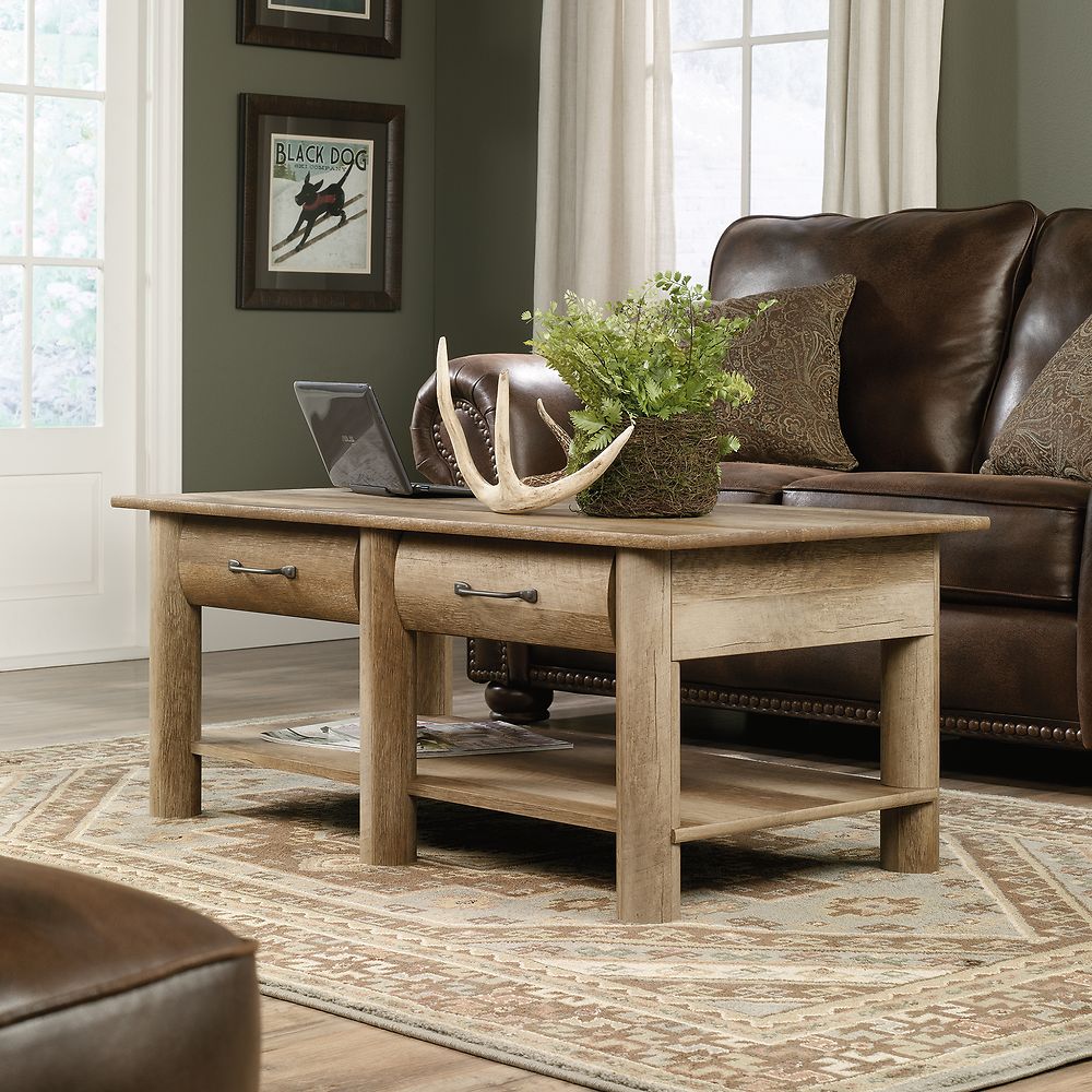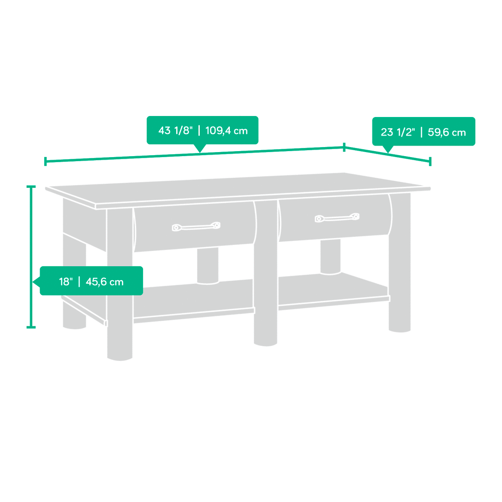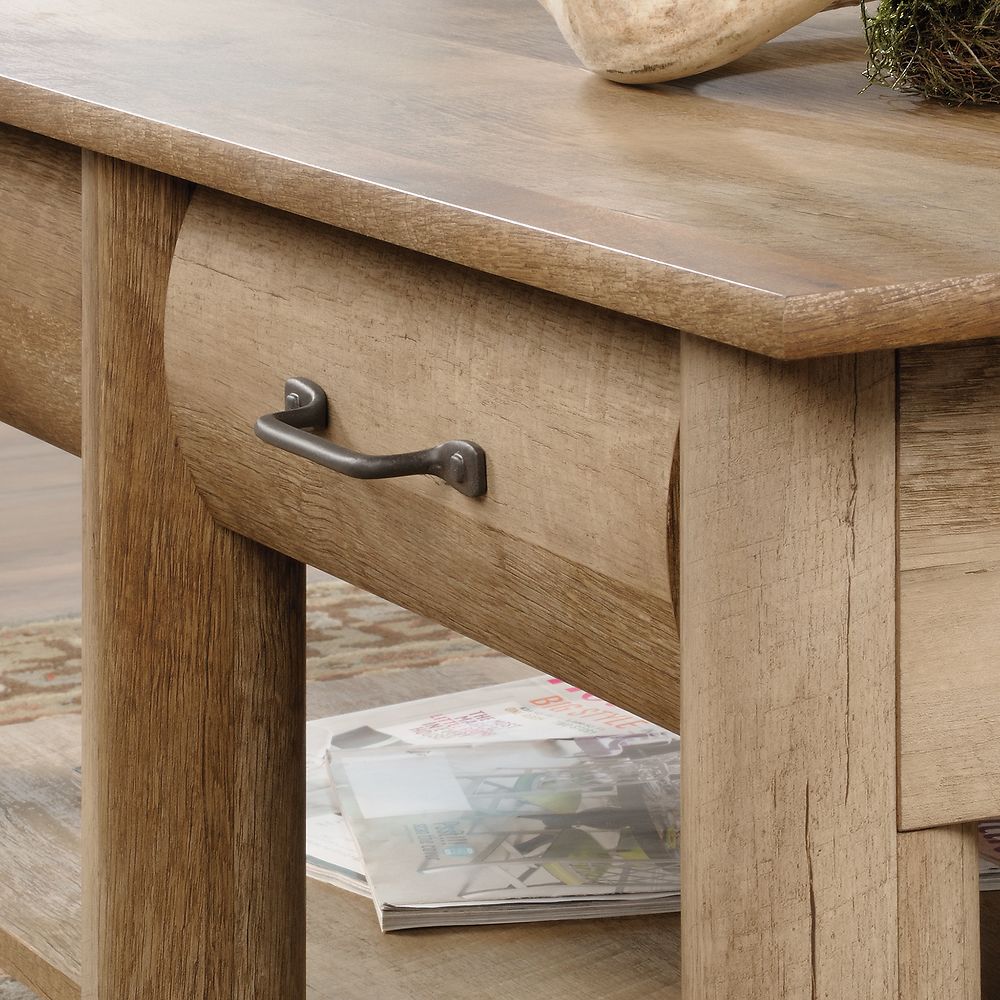 Hieno sohvapöytä kahdella vetolaatikolla.