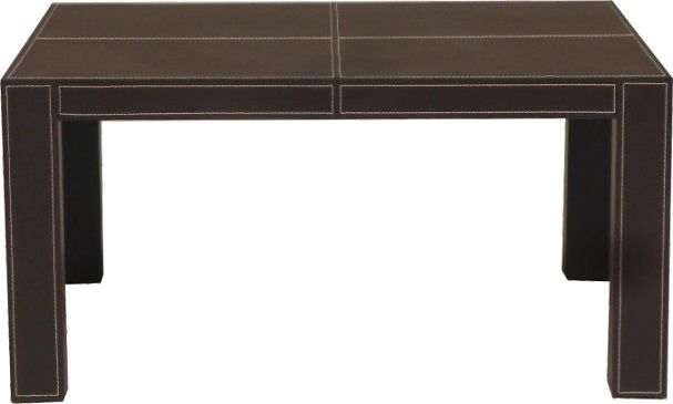 Keinonahkalla päällystetty suoralinjainen kantikas sohvapöytä.