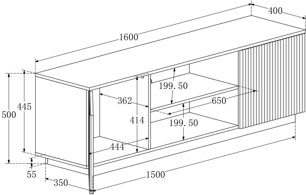 Upea, luonnonvärinen Verso tv-taso, jossa on kaksi kaappia sekä avohyllyt. Tv-tason runko on mdf-levyä ja tammiviilua ja sen ovet on koristeltu pyökkirimoilla.