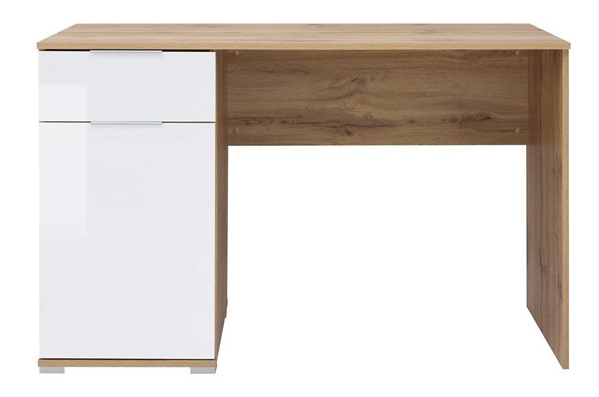 Tyylikäs puolikiiltävän ja matan yhdistelmä on valmistettu pinnoitetusta kalustelevystä. Valkoiset osat puolikiiltävää melamiinia, muut osat mattapintaiset. Rungossa kaunis vaaleanruskea puukuviojälitelmä.