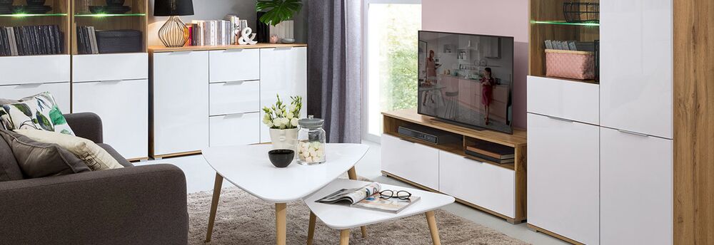 Tyylikäs puolikiiltävän ja matan yhdistelmä on valmistettu pinnoitetusta kalustelevystä. Valkoiset osat puolikiiltävää melamiinia, muut osat mattapintaiset. Rungossa kaunis vaaleanruskea puukuviojälitelmä.