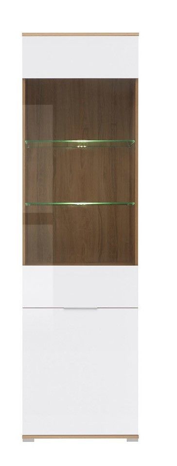 Tyylikäs puolikiiltävän ja matan yhdistelmä on valmistettu pinnoitetusta kalustelevystä. Valkoiset osat puolikiiltävää melamiinia, muut osat mattapintaiset. Rungossa kaunis vaaleanruskea puukuviojälitelmä.