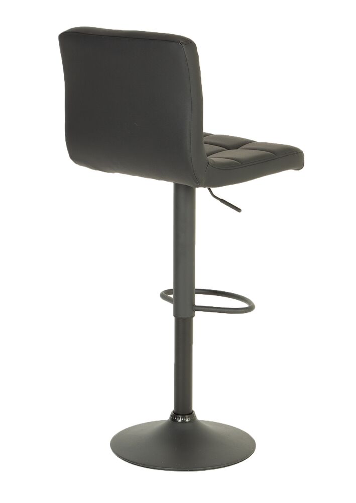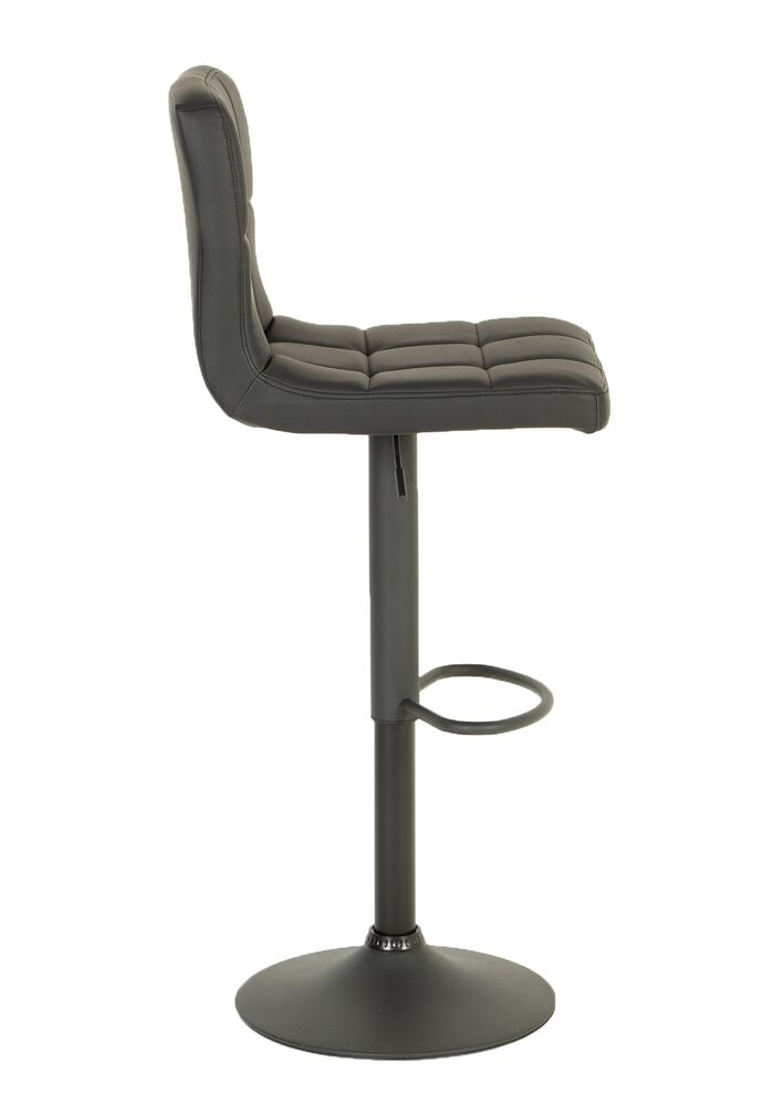 Verhoiltu pyörivä baarituoli kotikäytöön jonka istuinosa keinonahkaa. Mustalla metallirungolla.