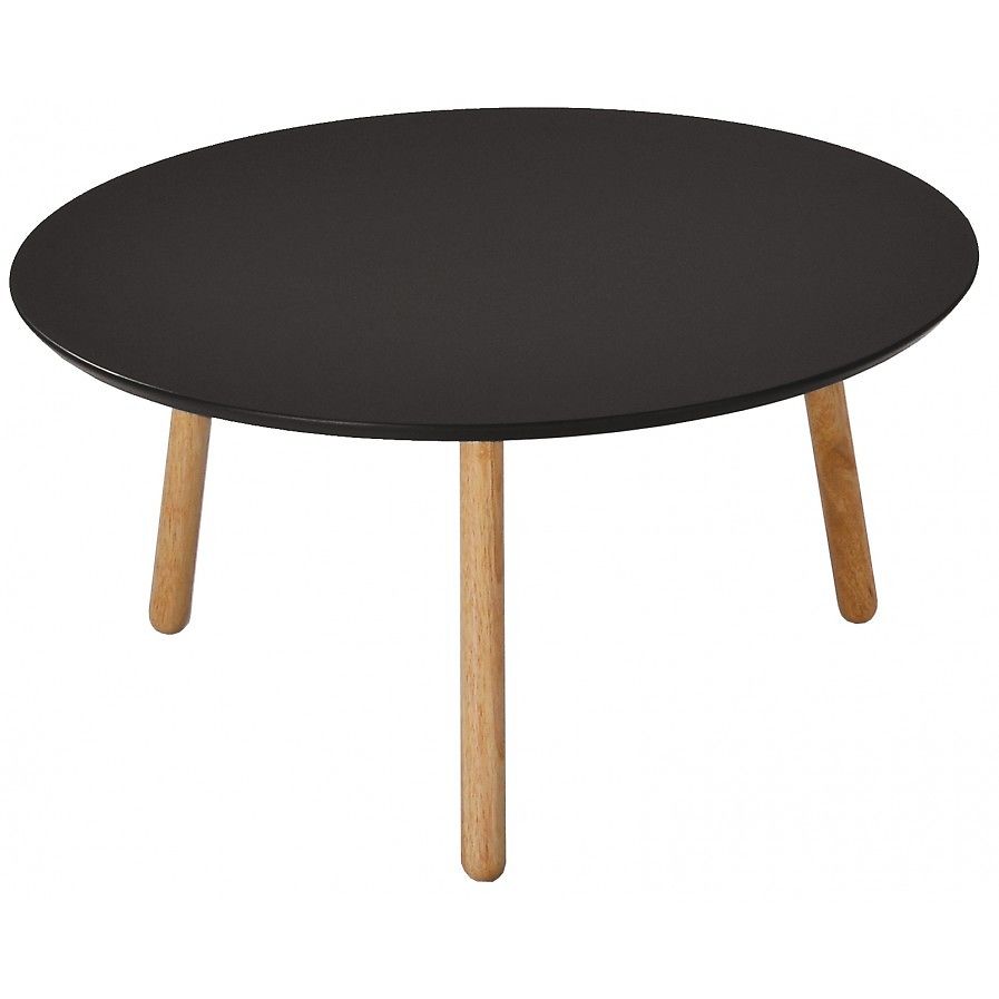 Upea pyöreä sohvapöytä. Tyylikäs yhdistelmä mustaa ja puuta.