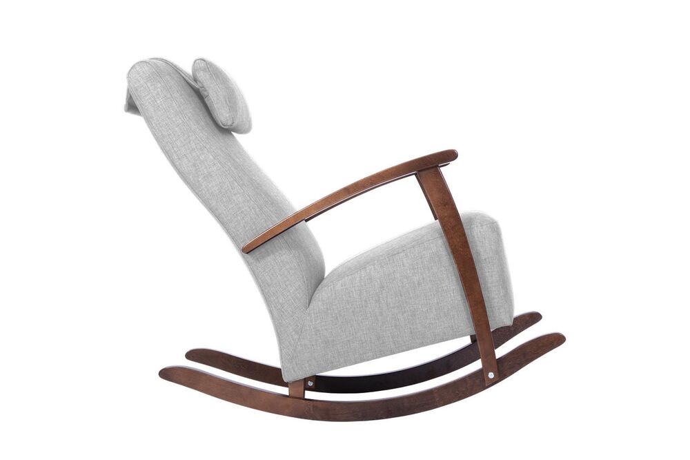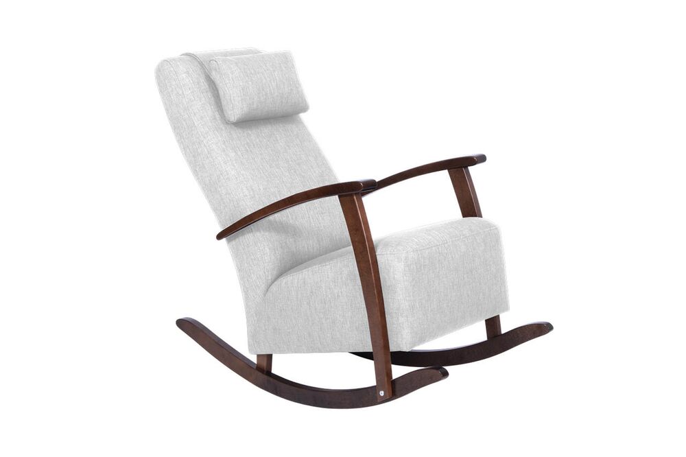 Laadukas ja erittäin mukava puurunkoinen verhoiltu keinutuoli. Useita verhoiluvaihtoehtoja. Puuosat saatavilla myös eriväreillä.