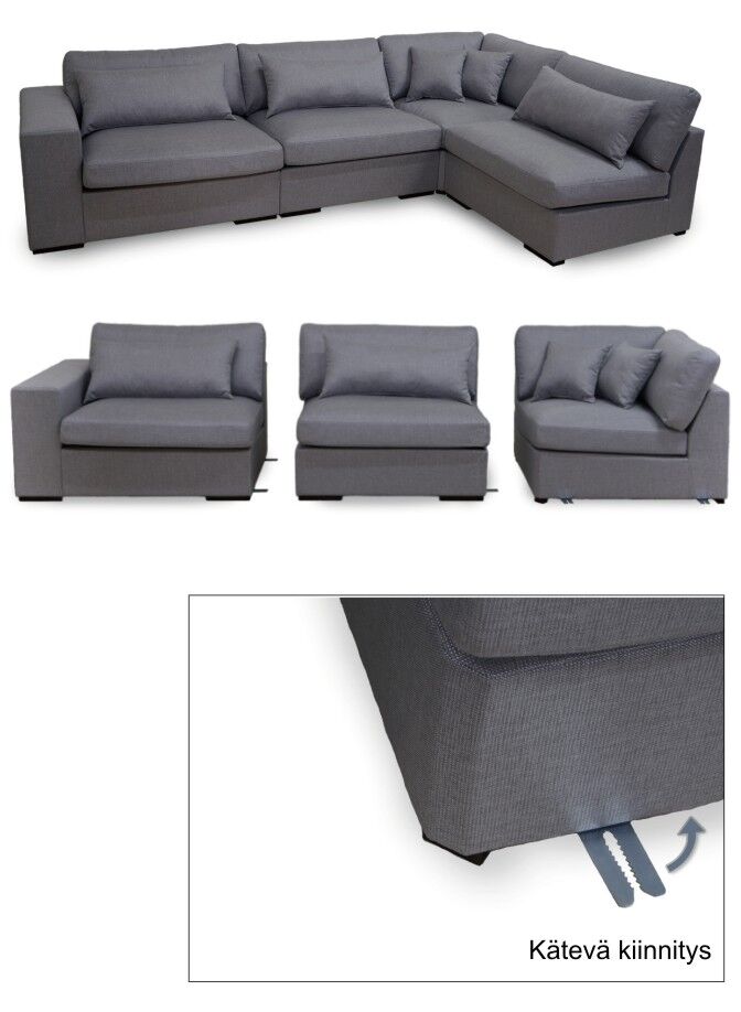 Kaunis Comforto modulisohvamallisto josta saat rakennettua unelmiesi kokonaisuuden. Mallia on helppo muokata tarpeen mukaan. Sohvasta voit rakentaa suoran- tai kulmamallisen sohvan.