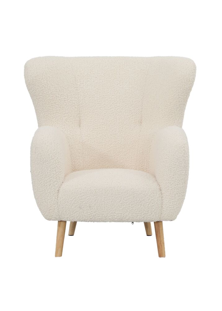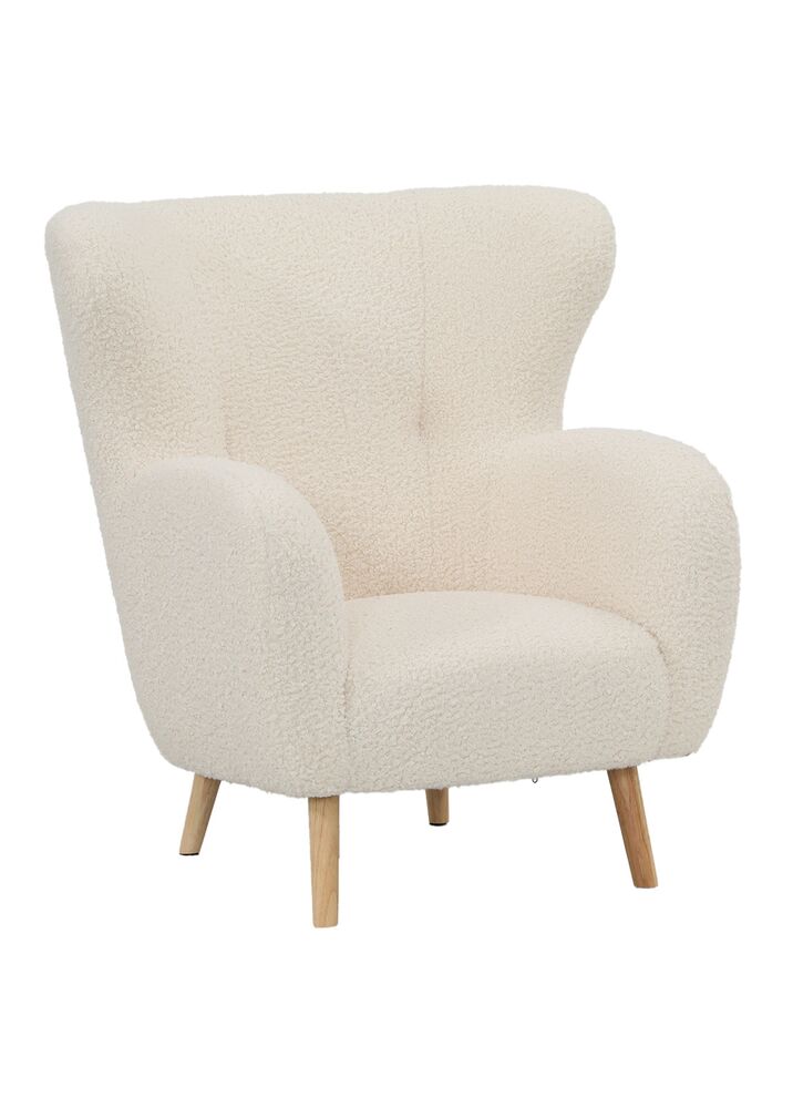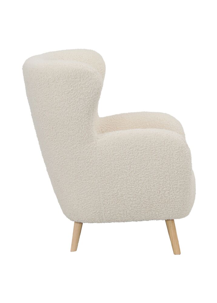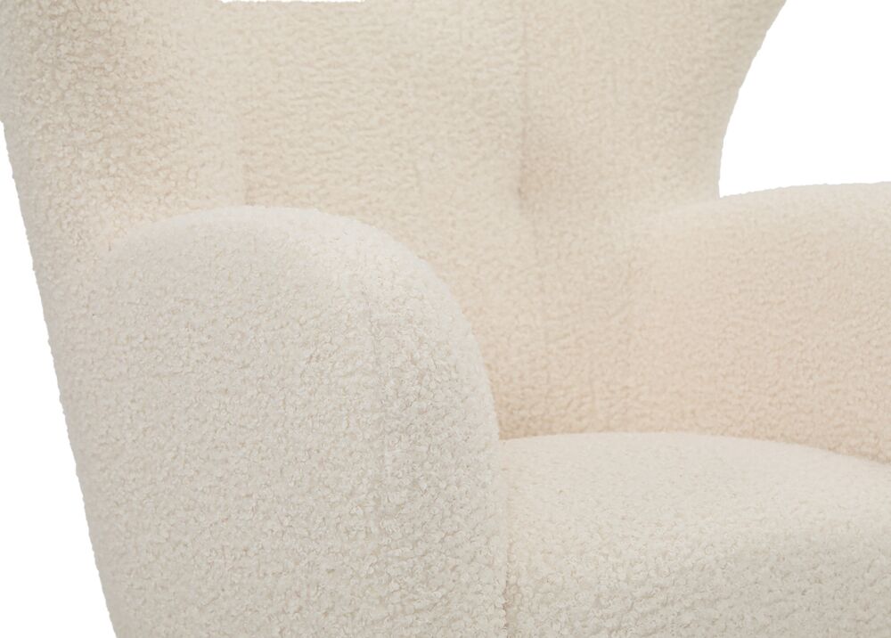 Näyttävä luonnonvalkoinen lepotuoli. Rosie tuoli tarjoaa erinomaista istuinmukavuuta ja klassista muotoilua. Pörräinen teddy kangas on ihanan pehmeä ja lämmin materiaali. Rosie tuoli on täydellinen valinta olohuoneeseen tai lukunurkkaan.
