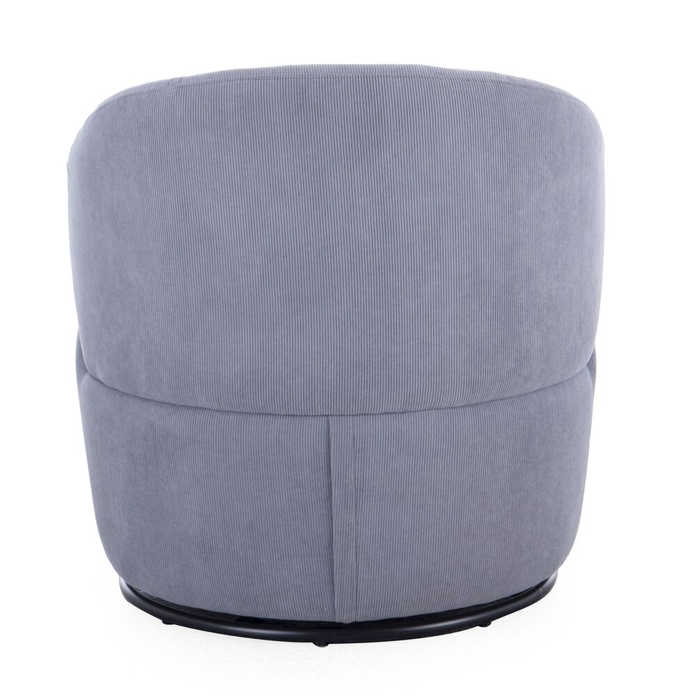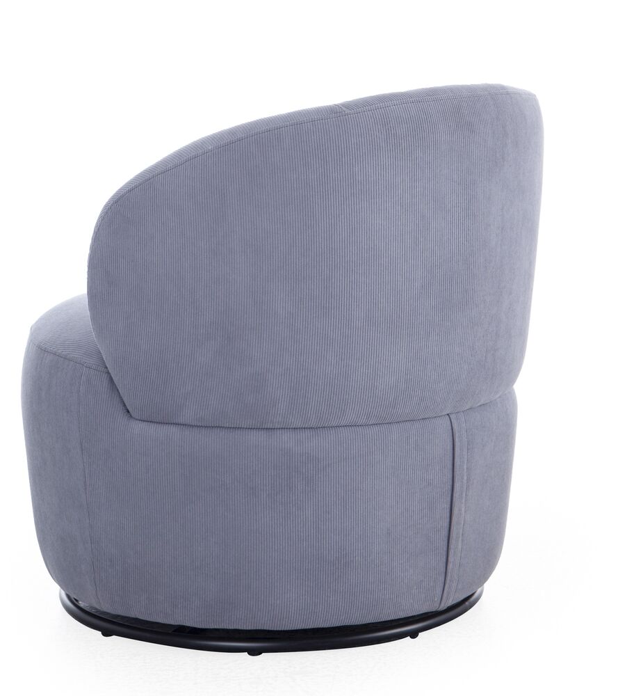 Klubi pyörivä nojatuoli on tyylikäs ja monikäyttöinen istuinratkaisu, joka tuo modernia mukavuutta ja liikkuvuutta olohuoneeseen, lukunurkkaukseen tai vaikka työhuoneeseen. Tuoli on verhoiltu trendikkäällä harmaalla raitakuvioisella Condyroy-samettikankaalla, joka yhdistää pehmeyden ja tyylikkään ilmeen.