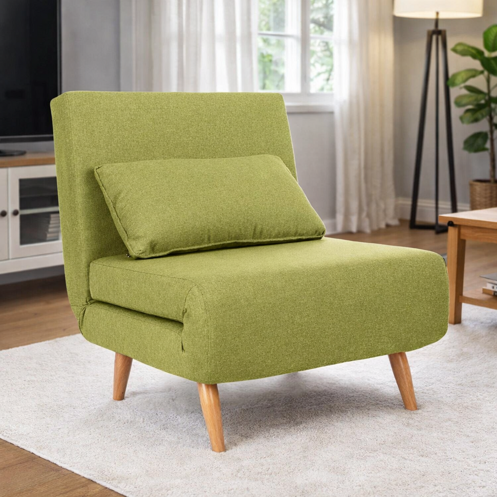 Kaunis ja moderni säädettävä löhötuoli, josta kätevästi myös yhdenhenkilön varavuode! Tämä käsinojaton vuodetuoli mahtuu myös pienempäänkin tilaan.Tämä on edullinen vaihtoehto vuodetuoliksi mökille, lastenhuoneeseen tai vaikka olohuoneeseen. Upea limenvirheä väri tuo piristystä huonetilaan.