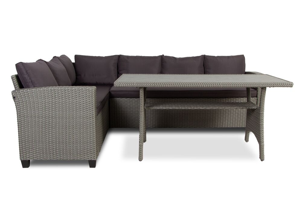 Crumley polyrottinkinen kulmasohva + pöytä harmaa