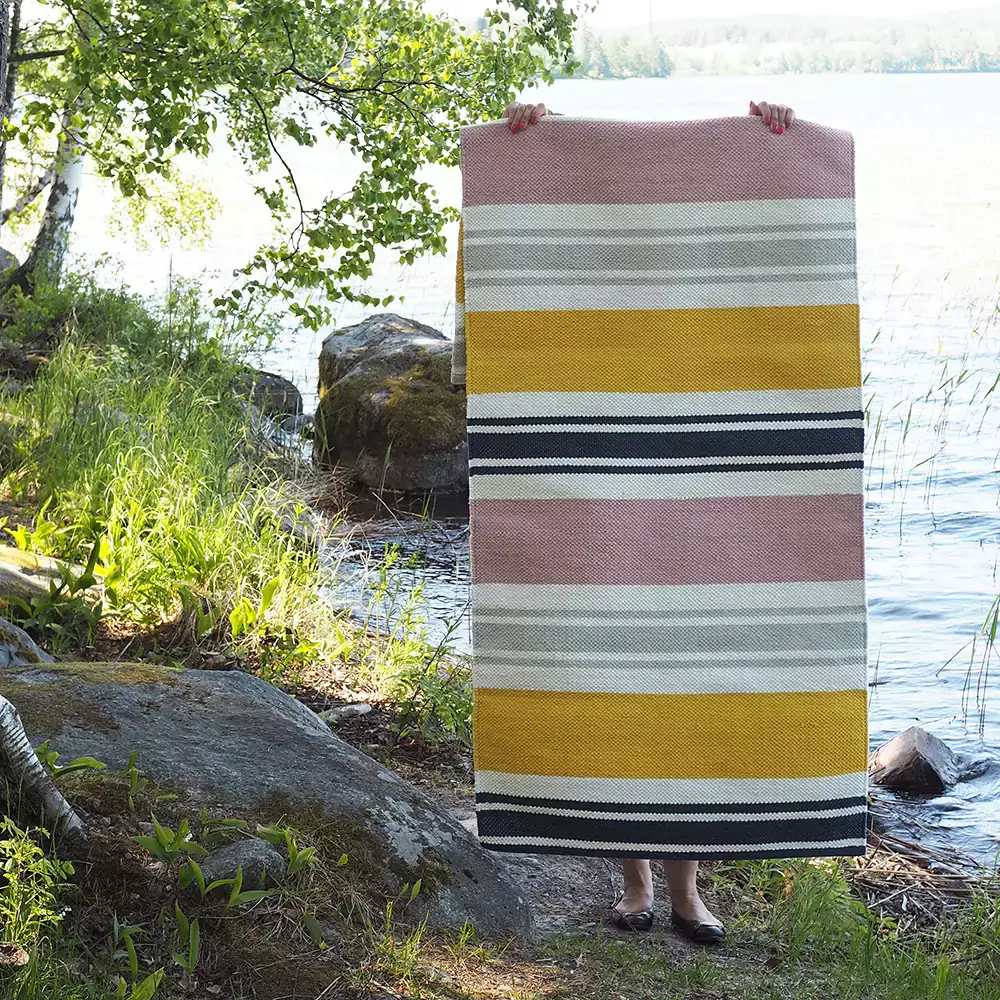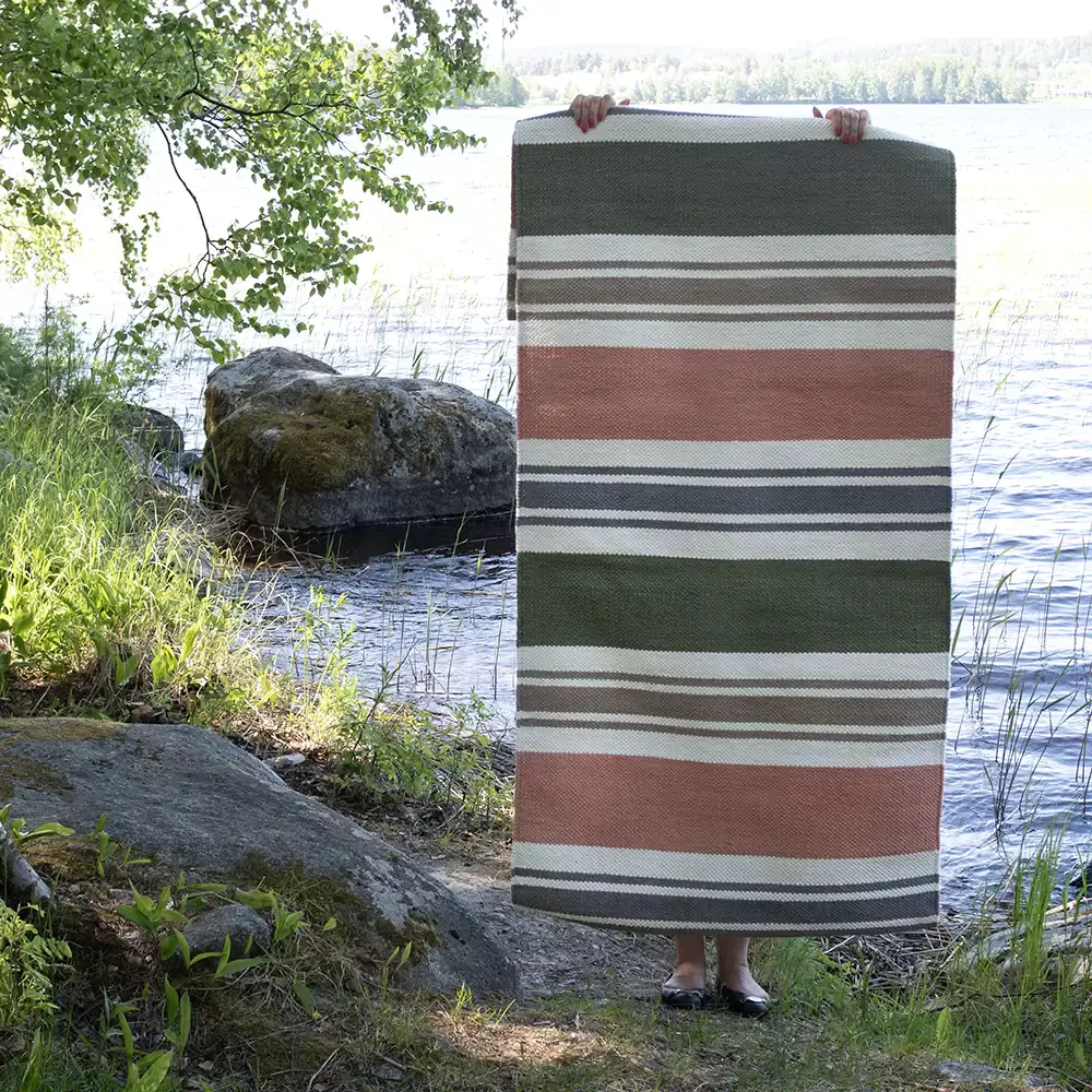 Kaunis raidallinen Tango puuvillamatto sopii skandinaaviseen moderniin kotiin tai kesämökille. Tango on tyylikäs ja moderni raidallilnen räsymatto. Kaksipuoleinen puvillamatto sopii oleskelutiloihin, keittiöön tai eteiseen. Yhdistelemällä eri kokoja ja värejä toisiinsa saat kotiisi yhtenäisen ilmeen. Maton ilmeen viimeistelee tyylikäs käännetty pääty. Perinteinen raidoitus moderneissa väreissä tuo puuvillamattoon räsymatto tyylistä ilmettä.