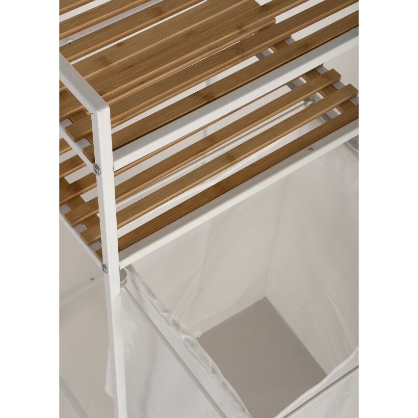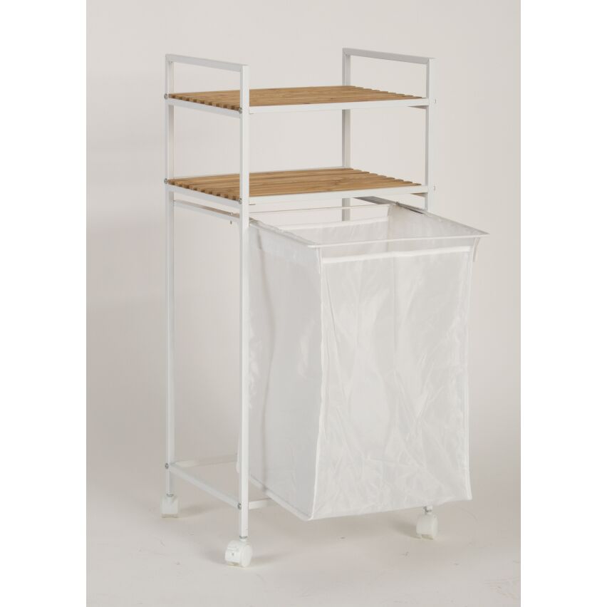 Tyylikäs pyykkikori jossa kaksi tasoa. Tuotteen pohjassa olevat rullat helpottavat tuotteen liikuttamista. Tuotteen runko metallia, tasot puuta. Tämä monikäyttöinen tuote toimii myös vaikka grillikatoksessa roskakorina. Saatavilla mustana ja valkoisena.