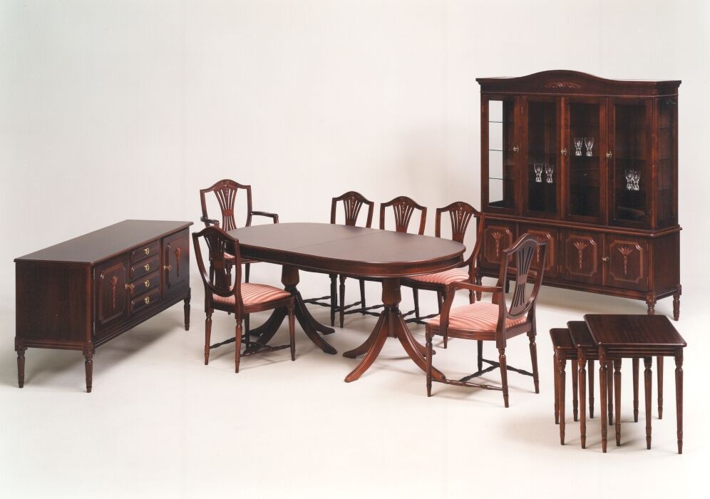 Kotimainen Laitalan valmistama ja käsityönä perinteisiä menetelmiä käyttämällä valmistettu Hepplewhite ruokaryhmä. Kysy lisää tai tilaa esite