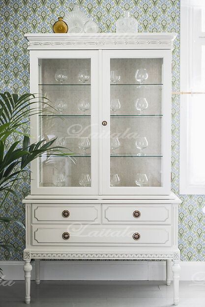 Kotimainen Laitalan valmistama ja käsityönä perinteisiä menetelmiä käyttämällä valmistettu Kustavilais hopeakaappi. Kysy lisää tai tilaa esite tuotteista