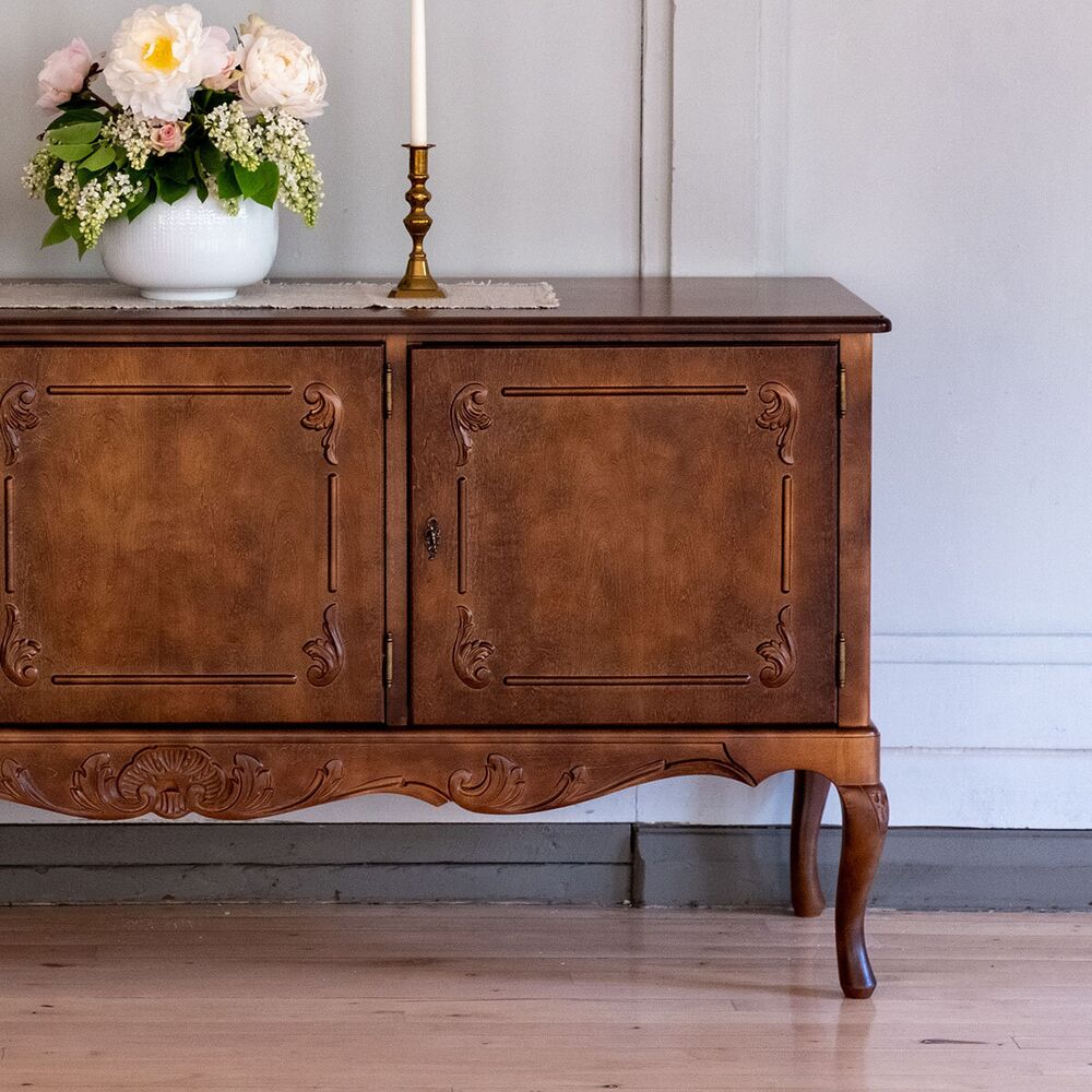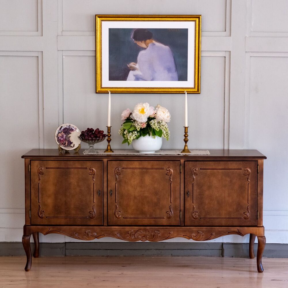 Voit sijoittaa kaapin esimerkiksi ruokailutilaan, jossa se palvelee sivupöytänä ja apuna tarjoilussa. Kaappi toimii niin astioiden kuin muidenkin tavaroiden säilytyksessä ja kätkee säilytettävät tavarat hillitysti koristeltujen oviensa taakse.