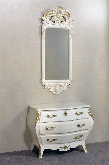 Mahapiironkia voi käyttää myös peilipöytänä. Yhdistä talonpoikaisvaikutteinen rokokoolipasto koristeellisen talonpoikaisrokokoopeilin tai kultakehyksisen peilin kanssa.