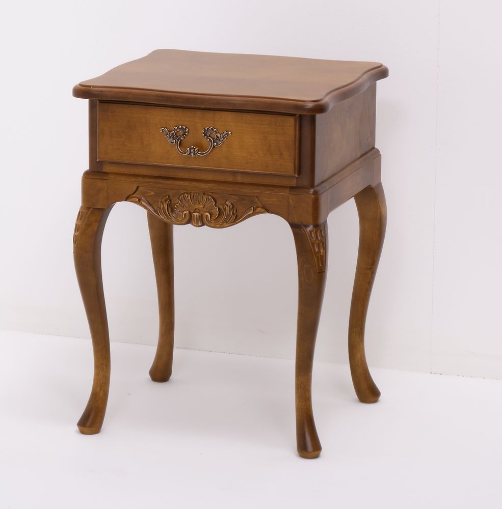 Kotimainen Laitalan valmistama ja käsityönä perinteisiä menetelmiä käyttämällä valmistettu Talonpoikaisrokokoo yöpöytä.