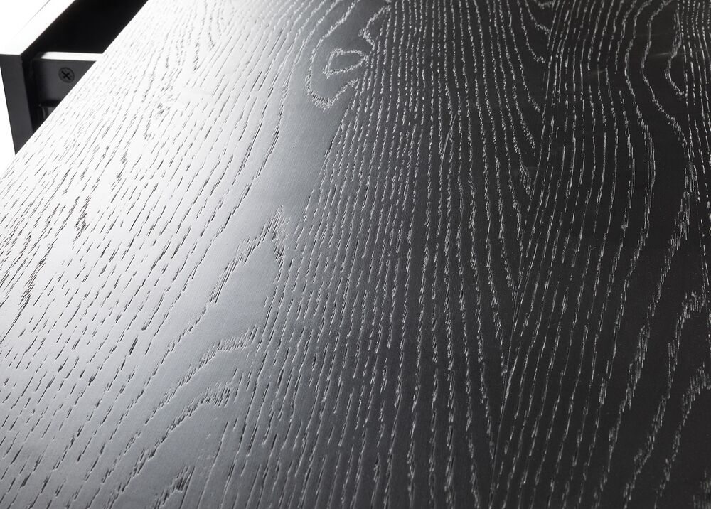 Pöytäosa pinnoitettua kalustelevyä, jalat metallia.