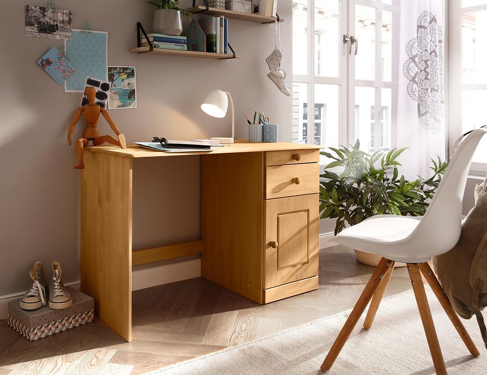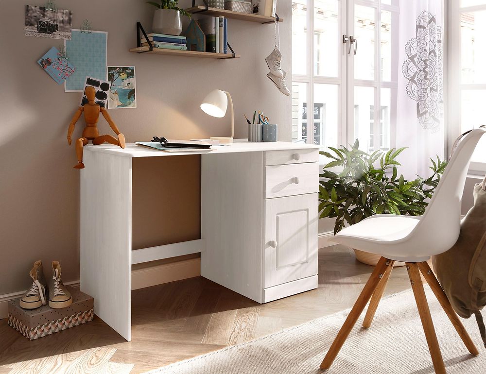Mio on kaunis massiivimäntyinen perus kirjoituspöytä. Kuultovalkoinen loppuunmyyty. Saatavilla vielä lakattuna