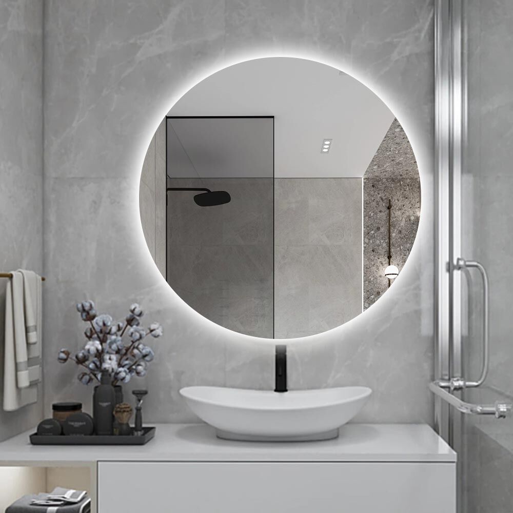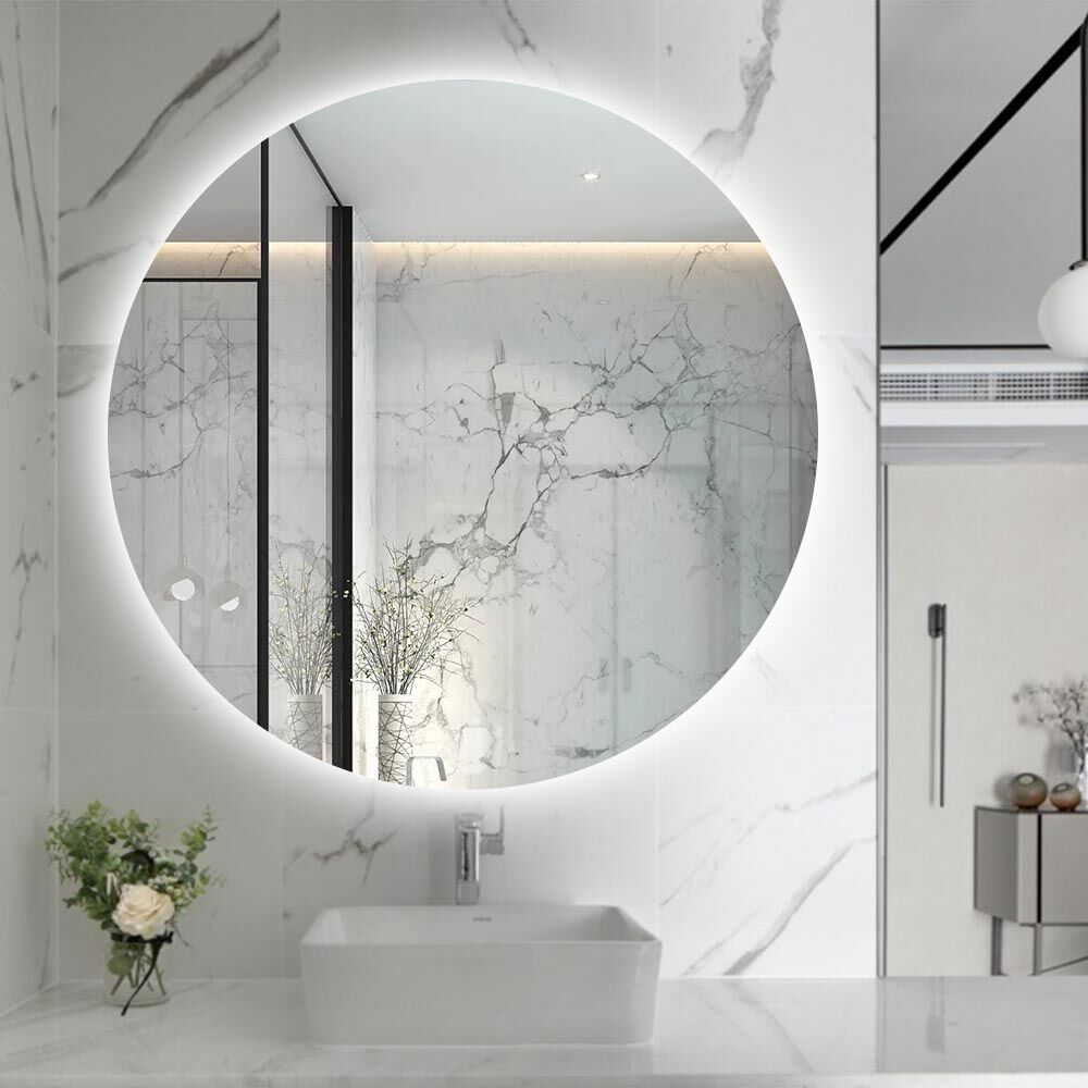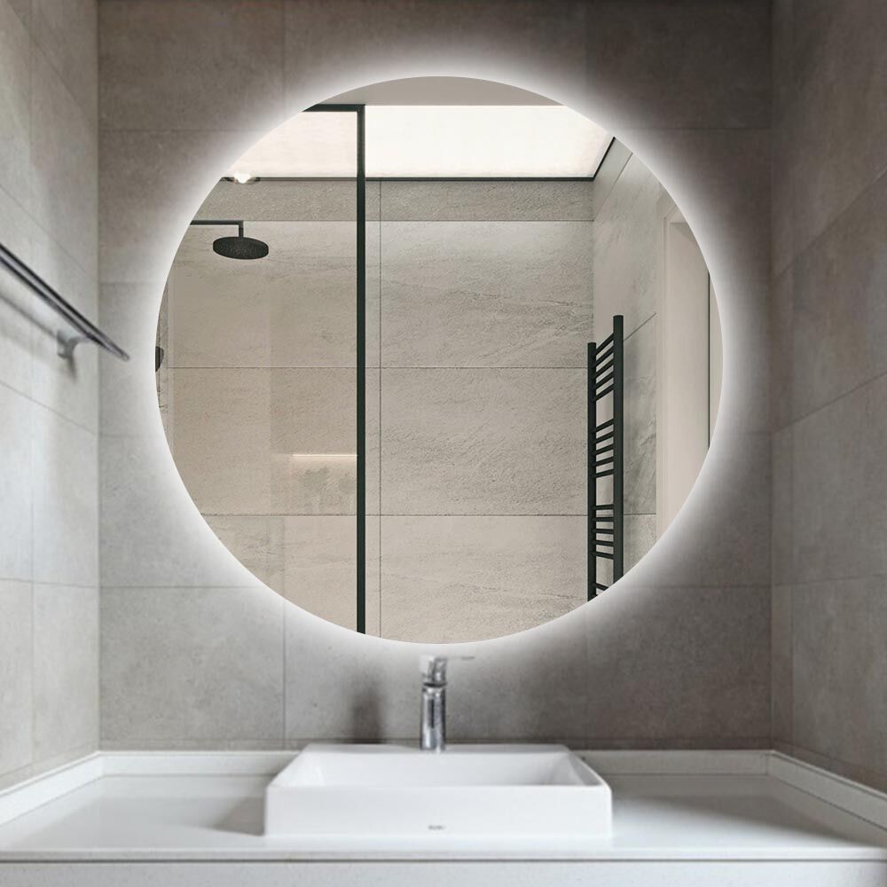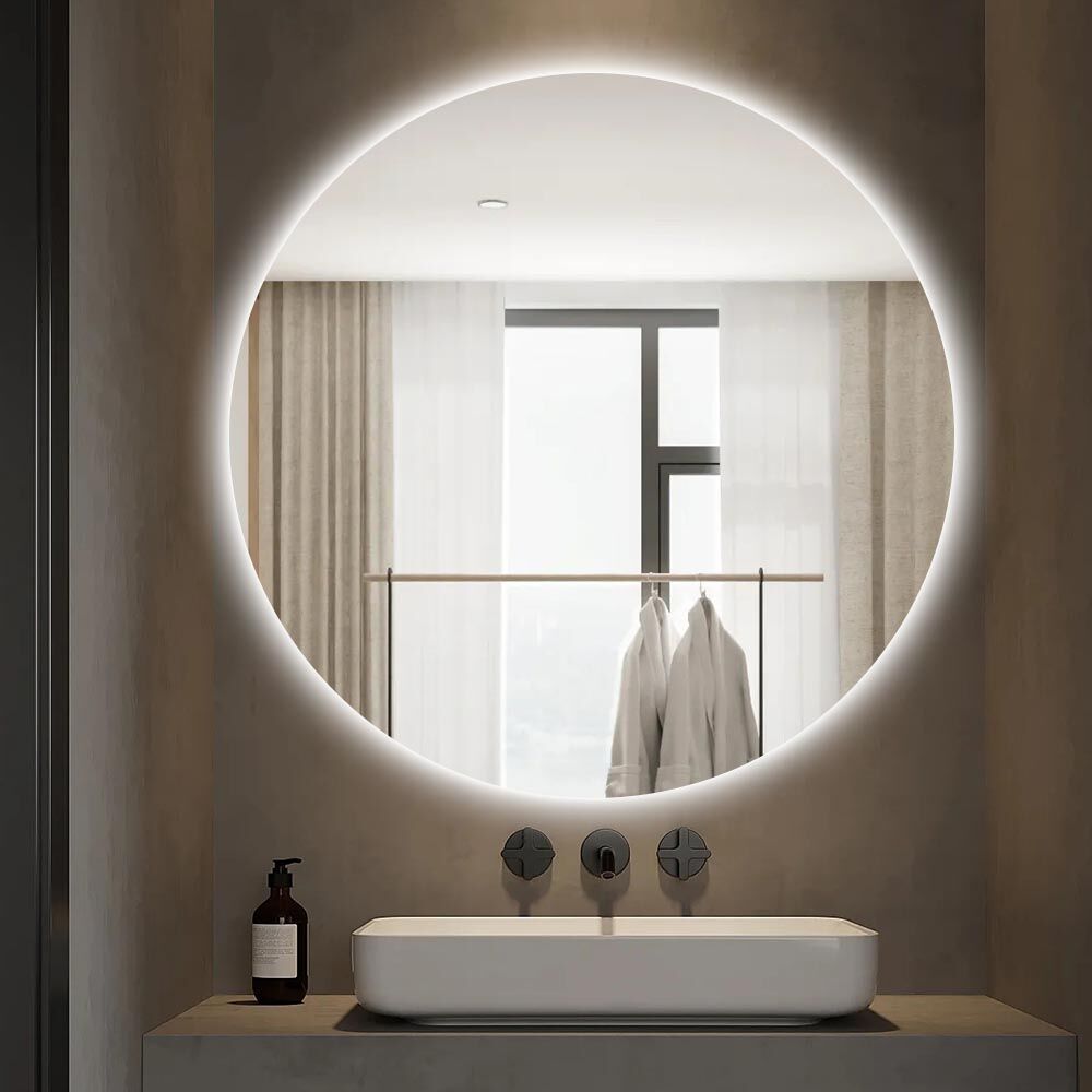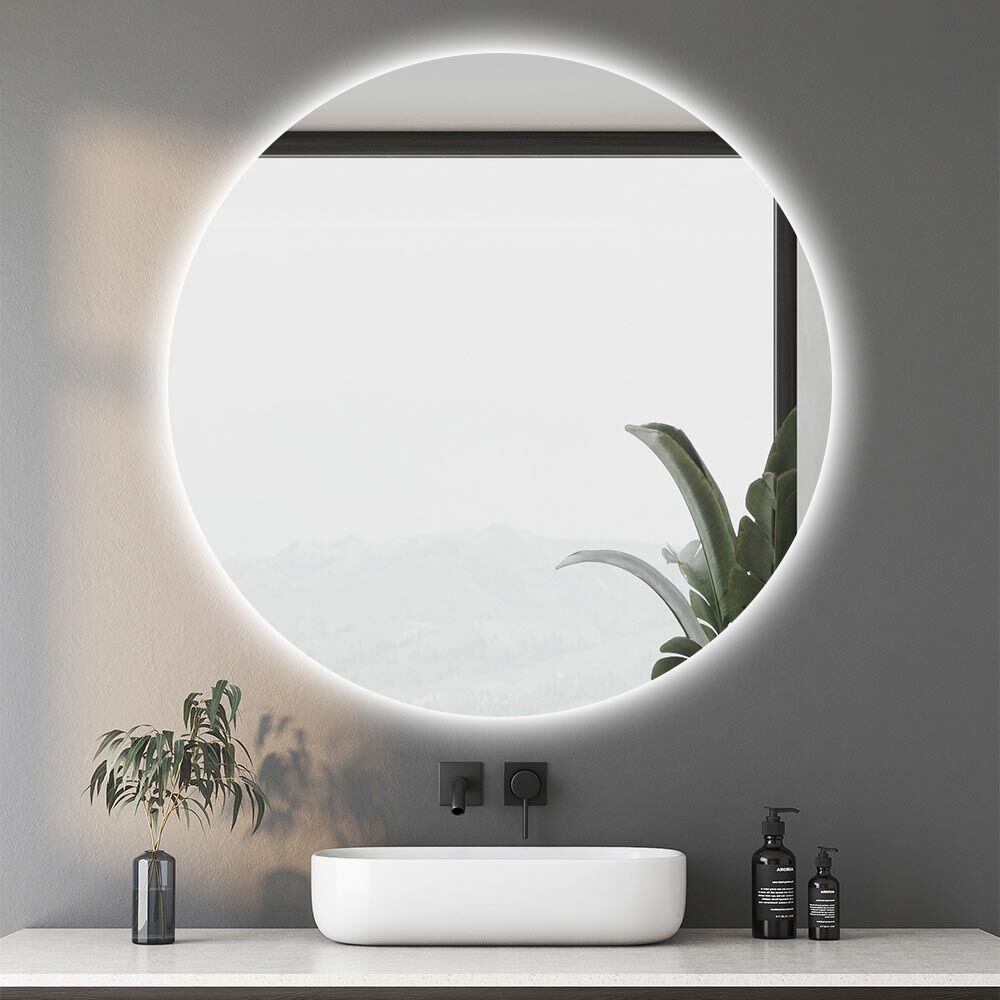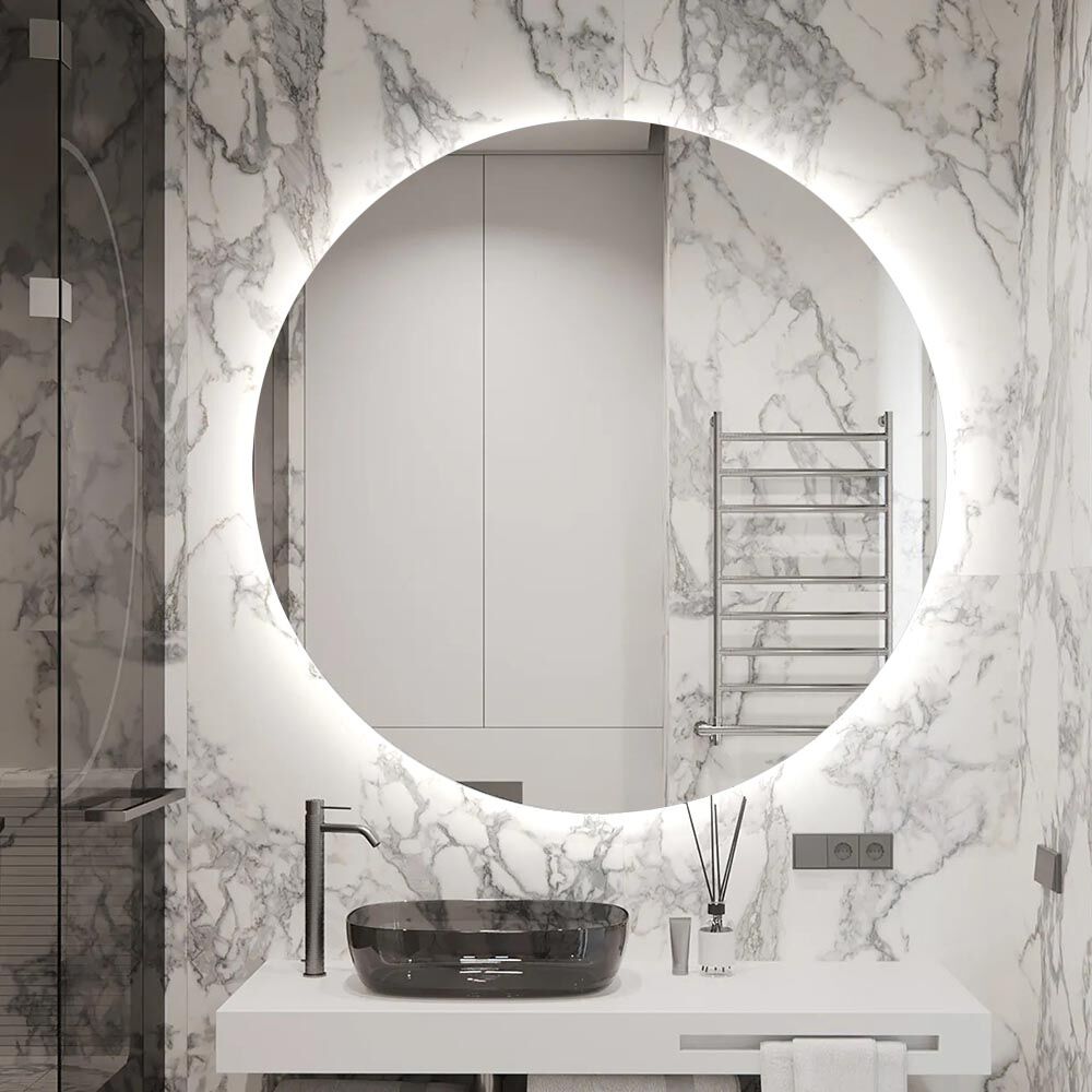 Tyylikäs kylpyhuonepeili valaistuksella sopii...